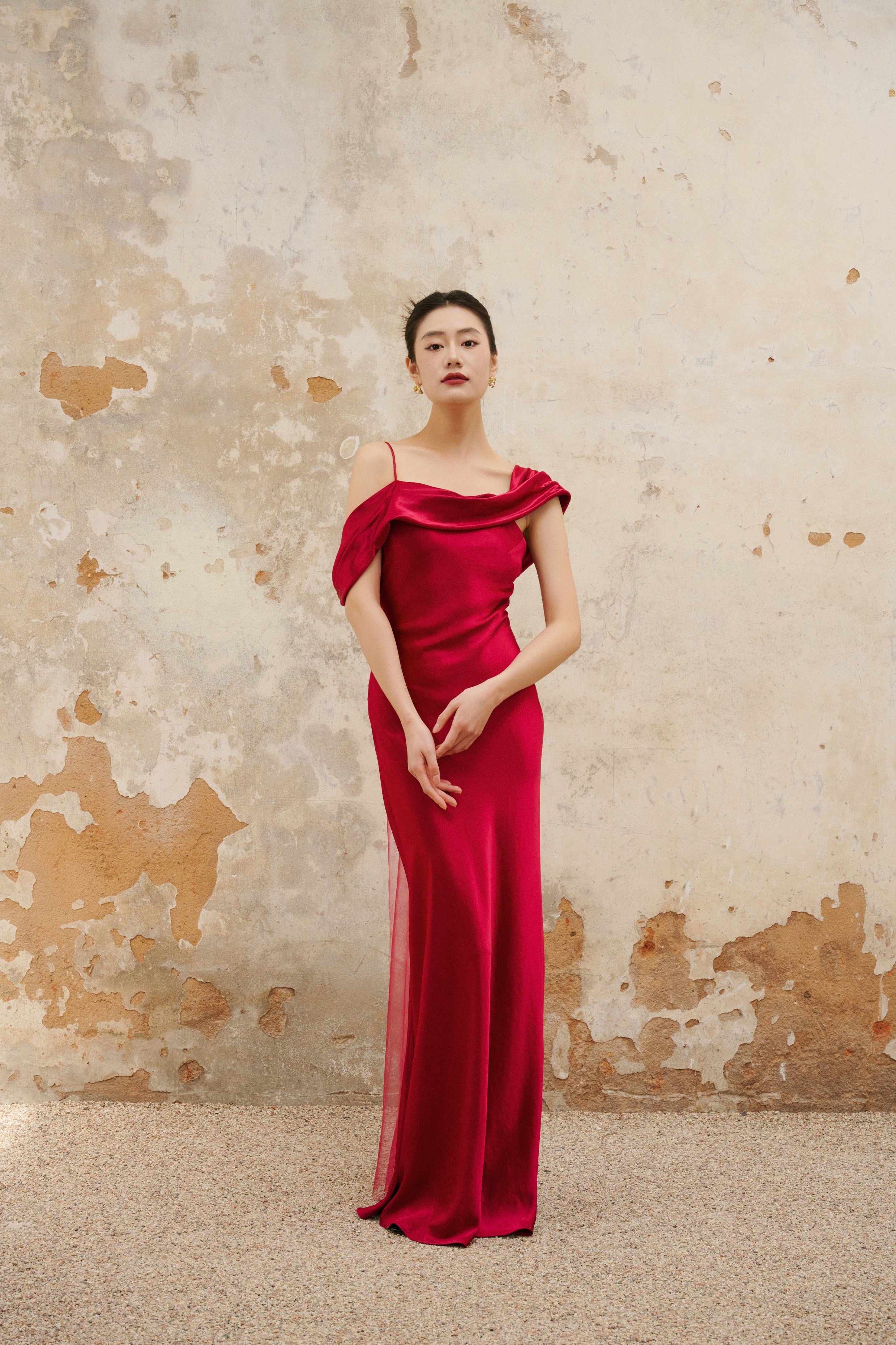 红色吊带落肩